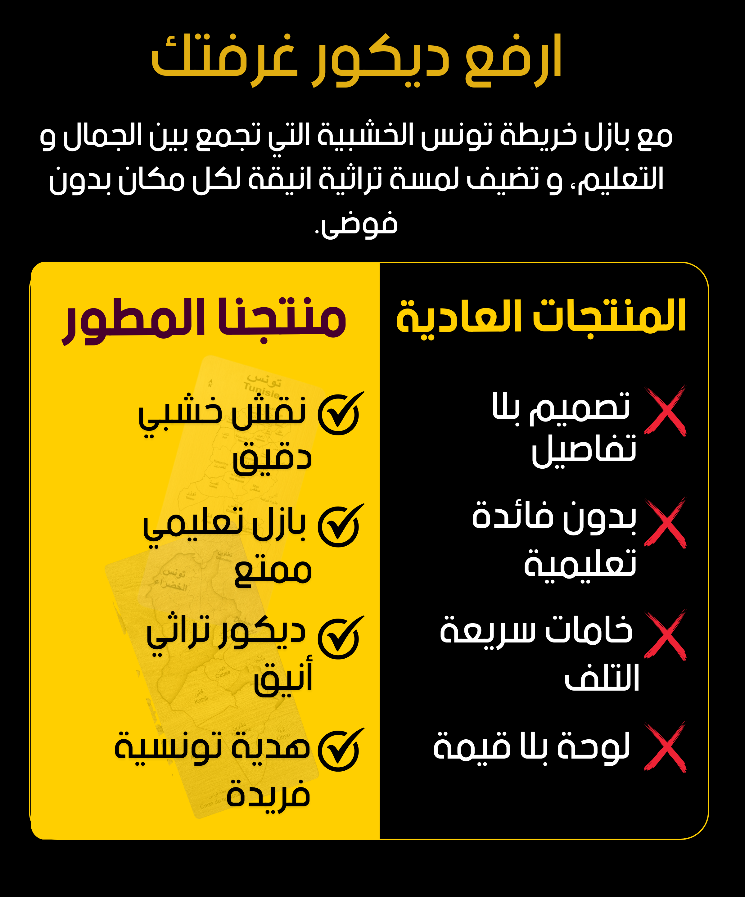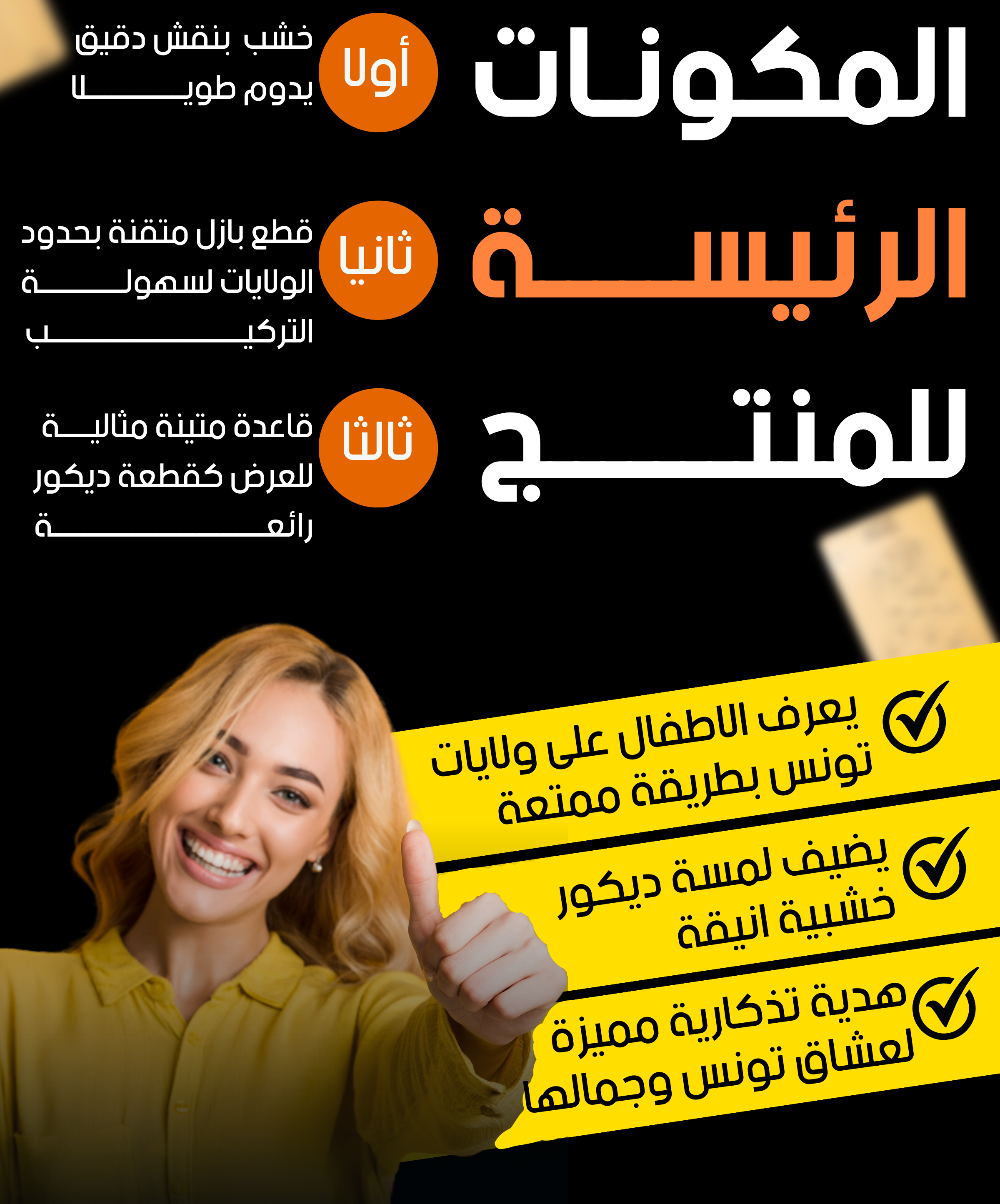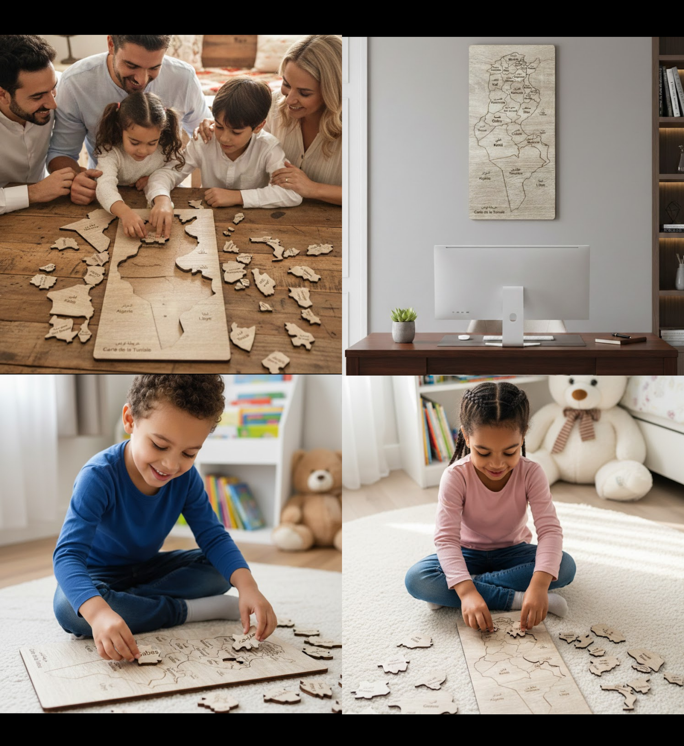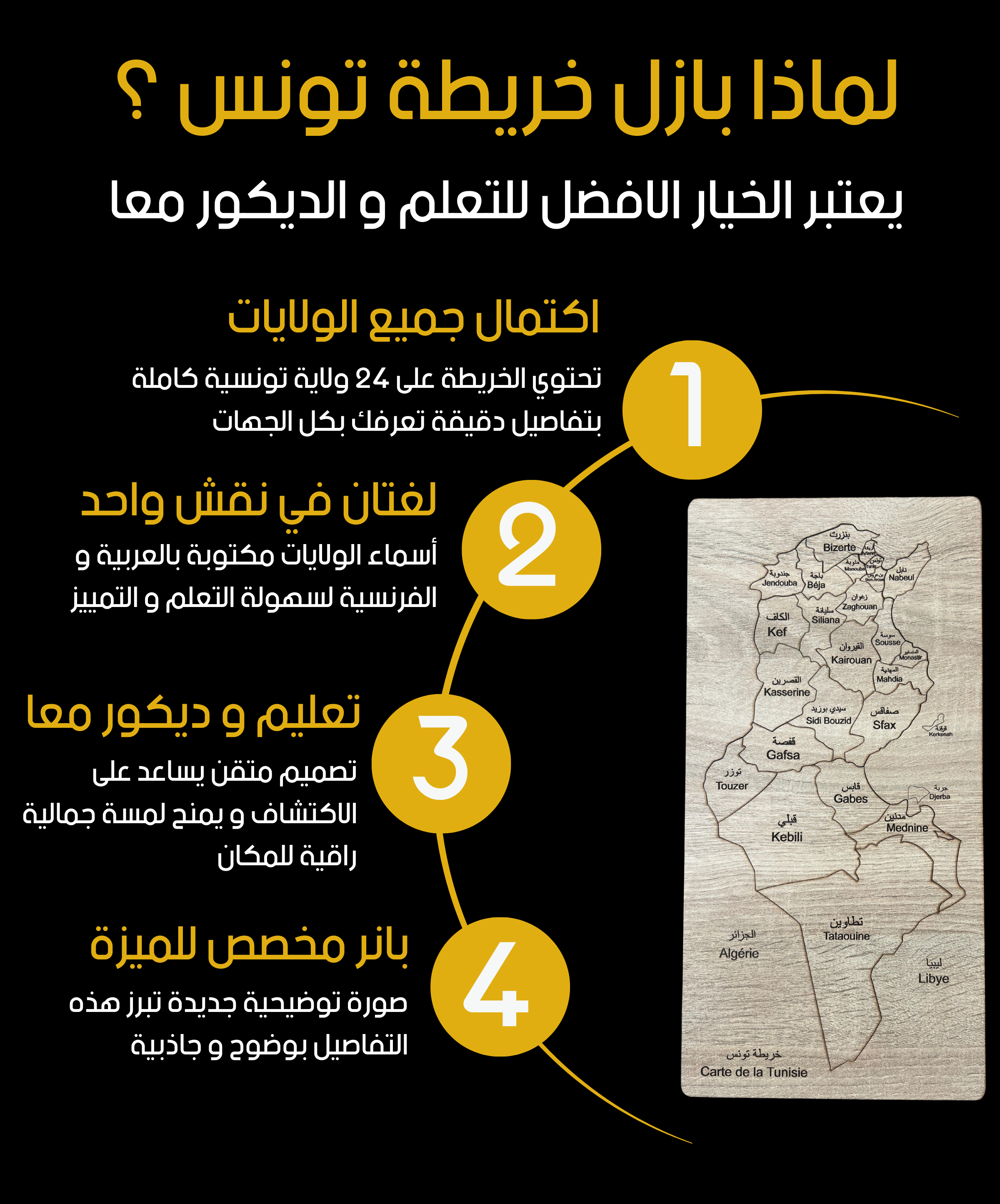 قطع تركيب خشبية لخريطة تونس - هدية تعليمية